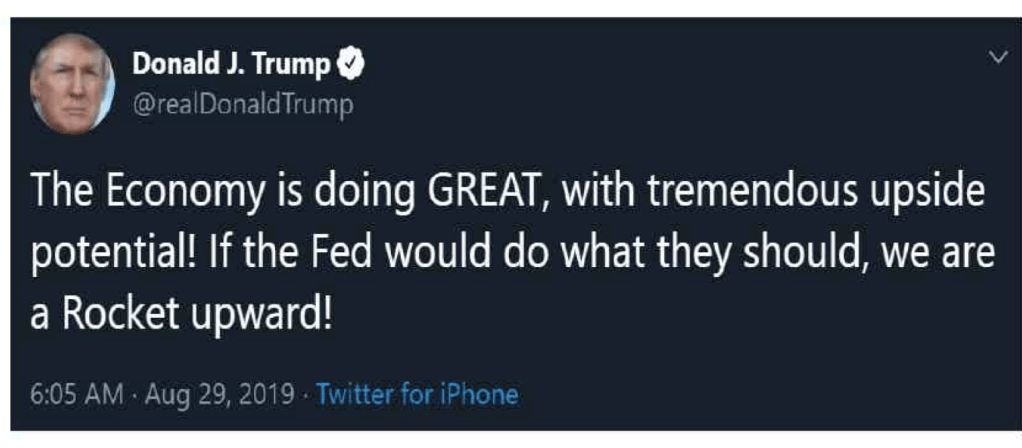A Fed move back to 0% rates (the above rocket) and a China trade deal, at the right time, is Trump’s only chance of re-election, in our opinion.